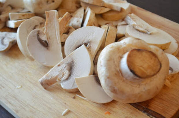 Добавить белые грибы и жарить еще 10 минут. Затем добавить шампиньоны и тушить все вместе еще 10 минут на среднем огне.