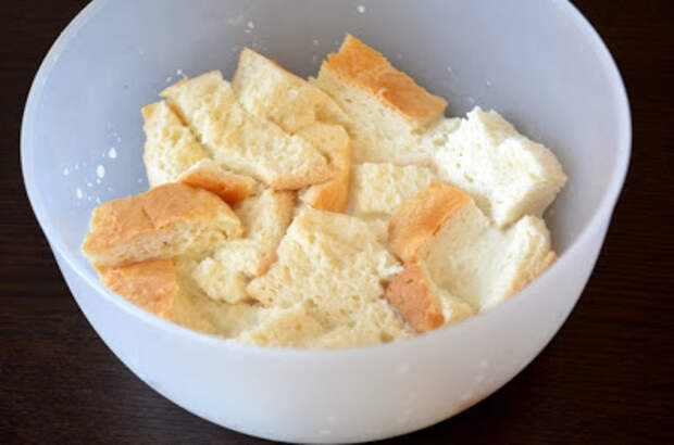Белый хлеб наломать и залить молоком. Дать постоять.
